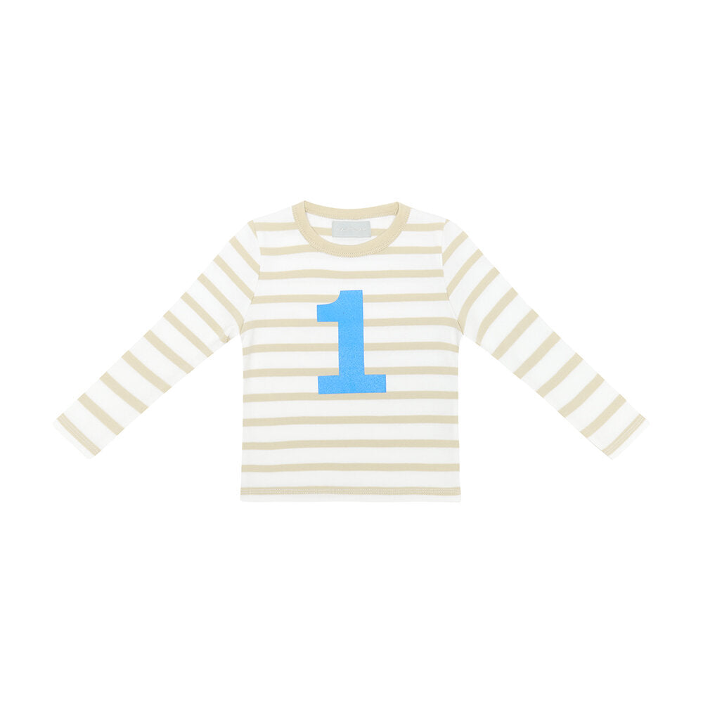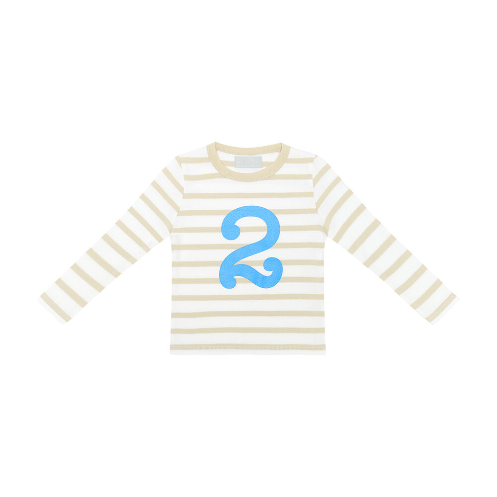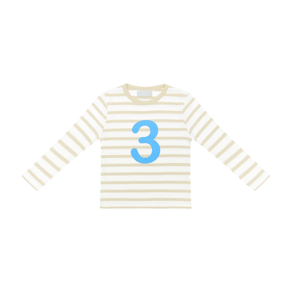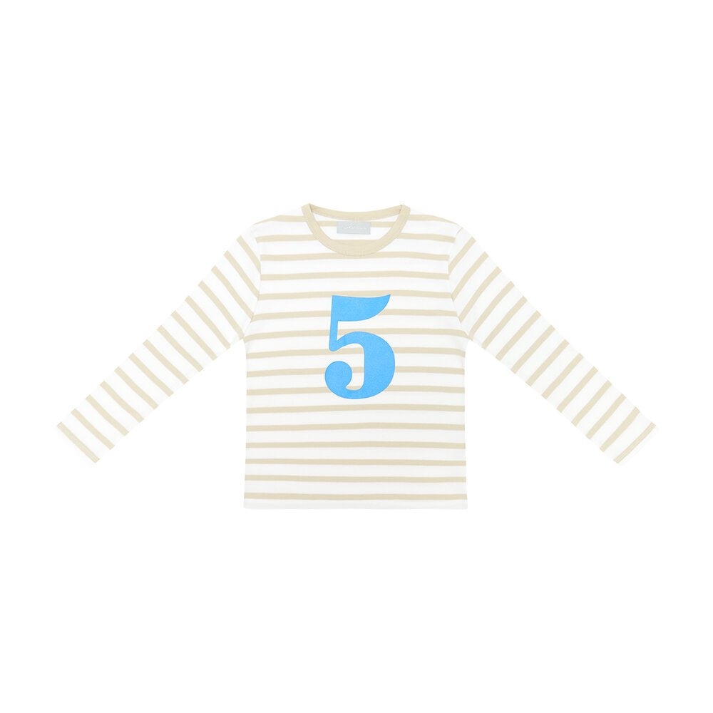 Bob & Blossom: Sand & White | Sea Blue Striped Number Tee - S