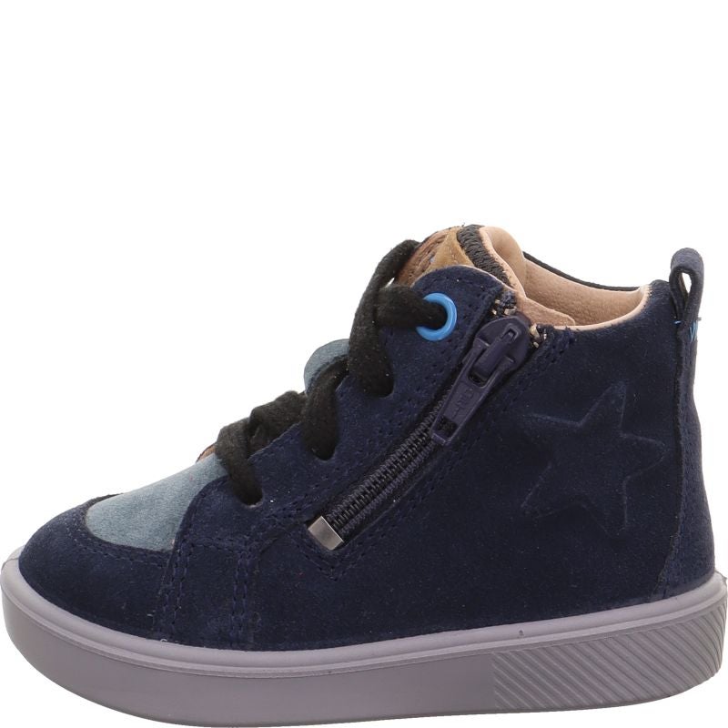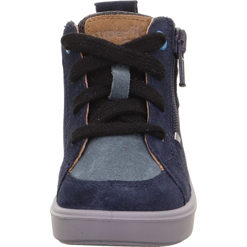 The Superfit SUPIES trainers bring sporty style and all-day comfort to little feet. With their chrome-free leather lining and removable leather insole, they’re soft, breathable, and kind to skin. The side zip makes them quick to slip on and off, while the laces ensure a snug, supportive fit. A flexible sole supports the foot’s natural rolling movement, while metal eyelets, a heel loop, and a high-top sneaker silhouette give them a grown-up, on-trend look. Crafted from durable suede and textile with Leather Working Group certified materials, they’re sustainable, stylish, and perfect for active autumn/winter adventures.