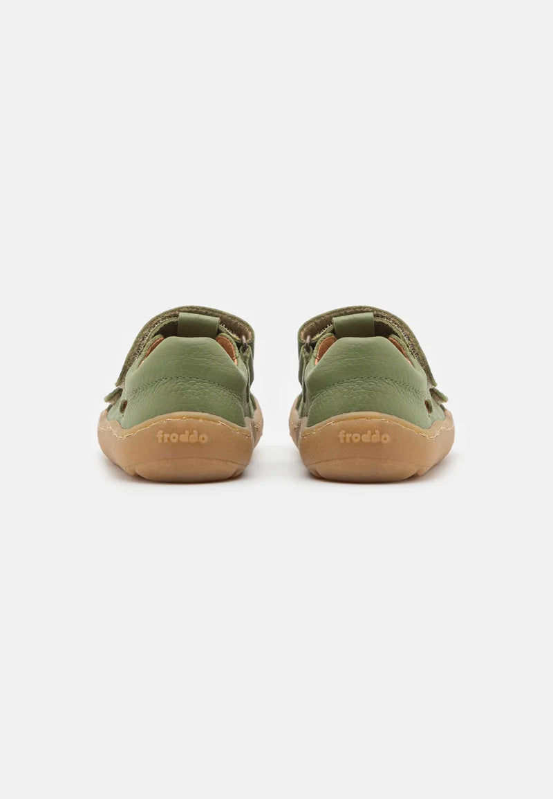 Froddo Barefoot Baze shoes in olive green combine natural foot development with everyday practicality. Featuring a wide, foot-shaped toe box and zero heel drop, they encourage children's feet to move freely and grow naturally. The flexible Lifolit® Extra-Grip sole delivers excellent traction without compromising mobility, perfect for walking, running, and climbing.