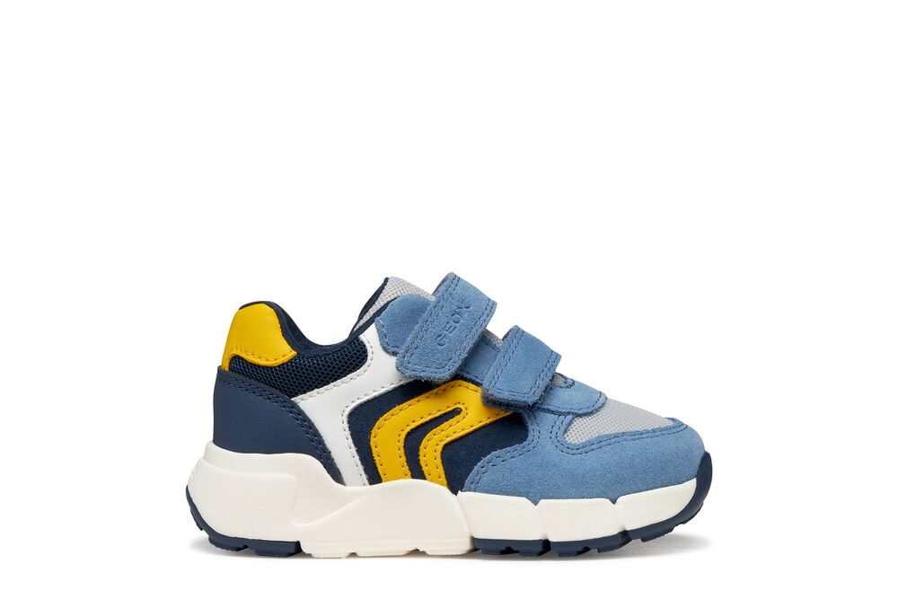 Geox: Flexyper Mini Velcro Trainers - Sky Blue / Yellow