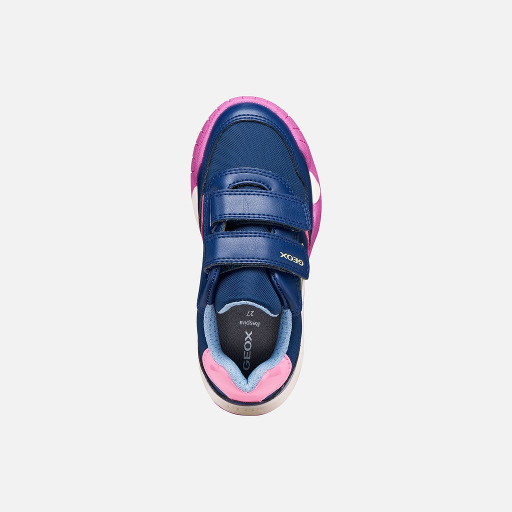 Geox: J Rann-E Velcro Trainers - Dk Royal / Pink