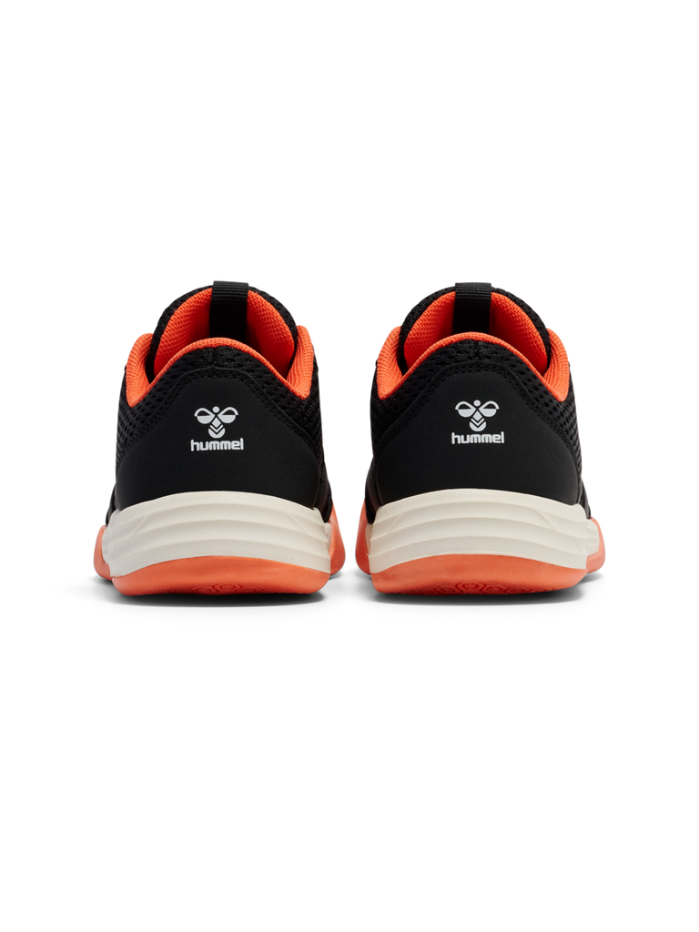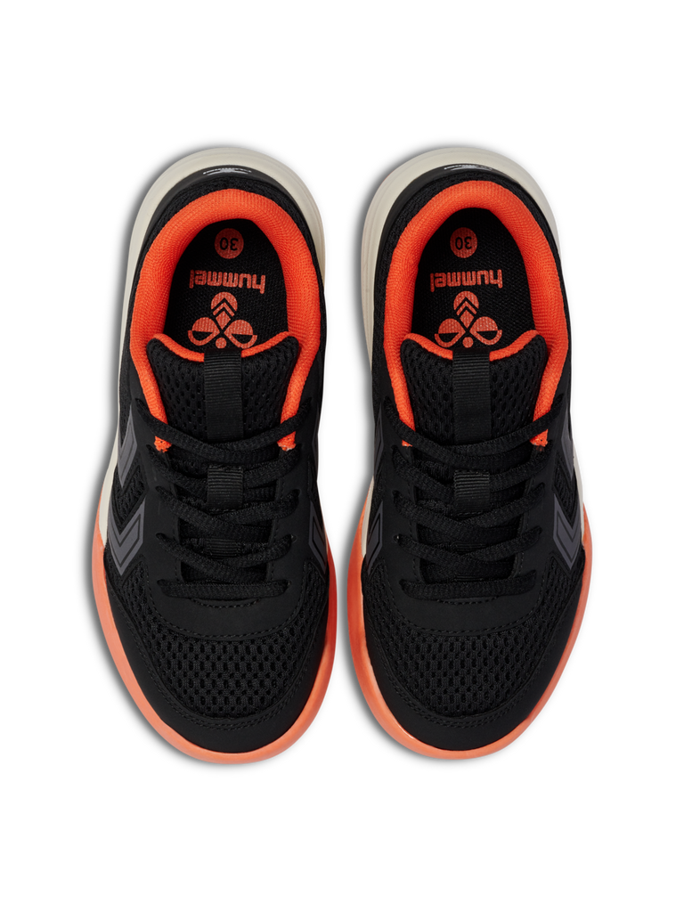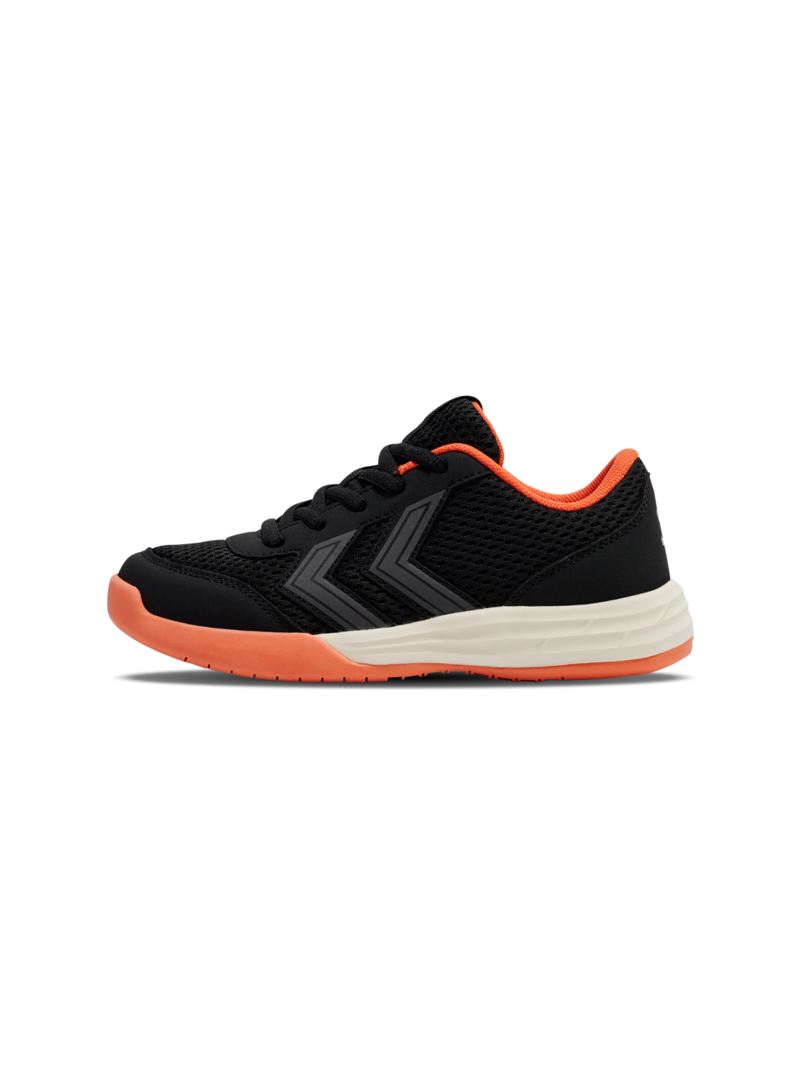 The Hummel Multiplay Flex LC Sport Trainer in Anthracite with black and orange details is designed to keep up with energetic kids. With an open cage construction and breathable mesh panels, these trainers deliver comfort and ventilation during play, sports, and everyday wear.