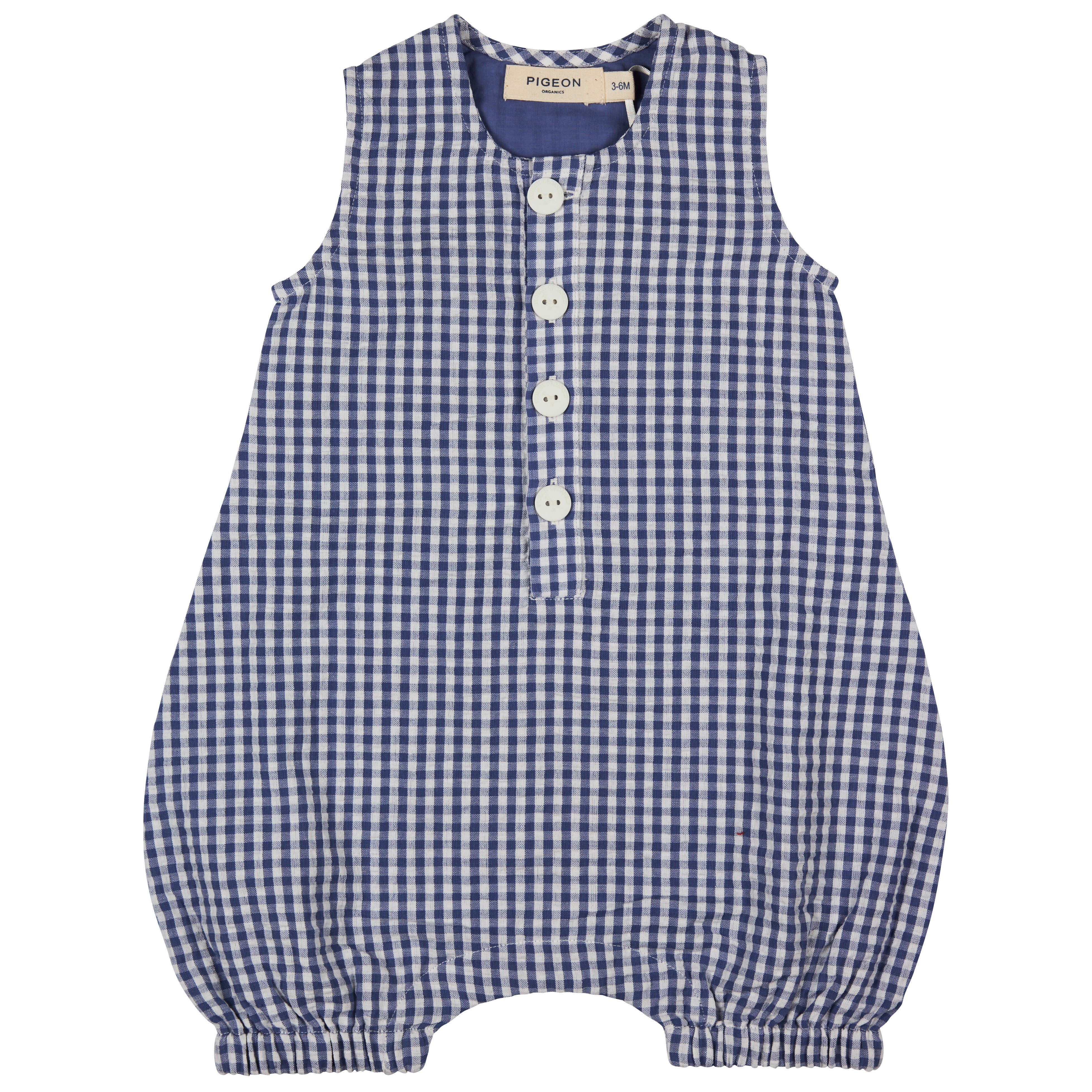 Pigeon Organics: Baby all-in-one (seersucker check) -Indigo