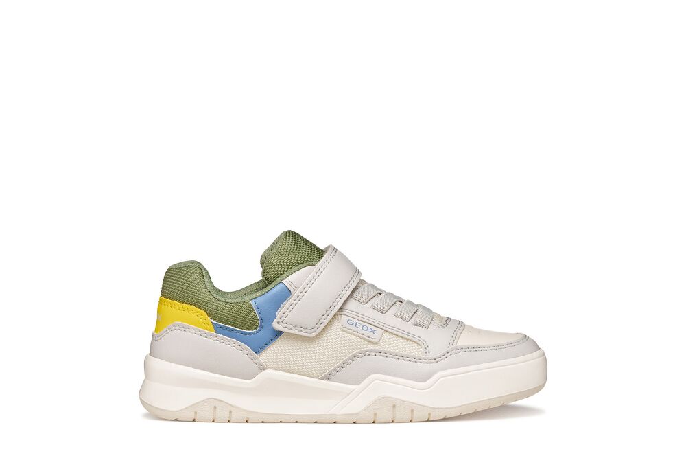 Boys sneakers with a strong urban and modern appeal, ideal for casual or more sporty outfits. With their light grey and green upper in leather-effect material and nylon, they enhance school and leisure outfits. Thanks to their breathable and flexible outsole, Perth sneakers ensure maximum comfort with every step