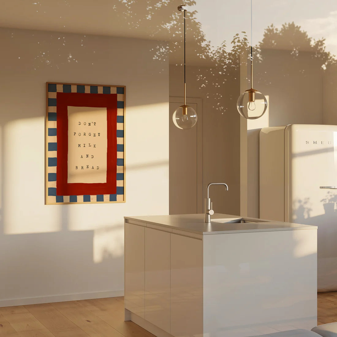 Don't Forget Milk & Bread Checkered Kitchen Print