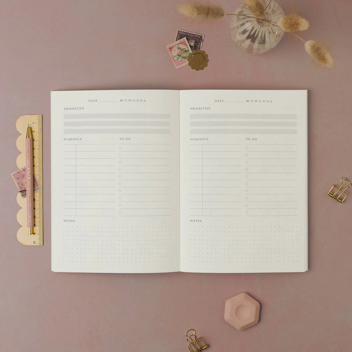 The pages are undated, allowing you to fill in the date and use each page as desired, so you can stop and start with your planning, without wasting any pages.