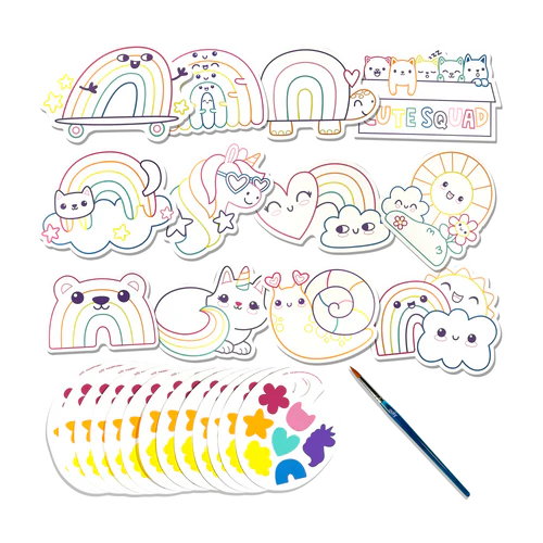 This watercolour kit features adorable rainbow-themed paint cards, making it the perfect art set for kids who love bright colors and cute designs. Just add water to the palette, brush on the paint, and watch magical rainbow characters come to life! Designed for kids watercoloring at home, in classrooms, or on the go, this set makes painting easy and mess-free.
