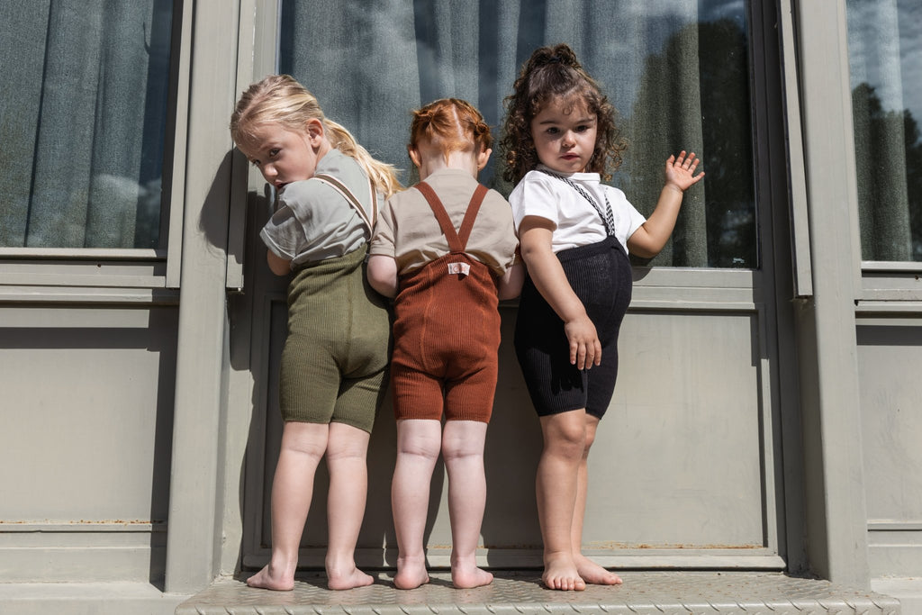 These unique shorty tights with braces will keep pace with even the most active babies and toddlers during any summer adventure.