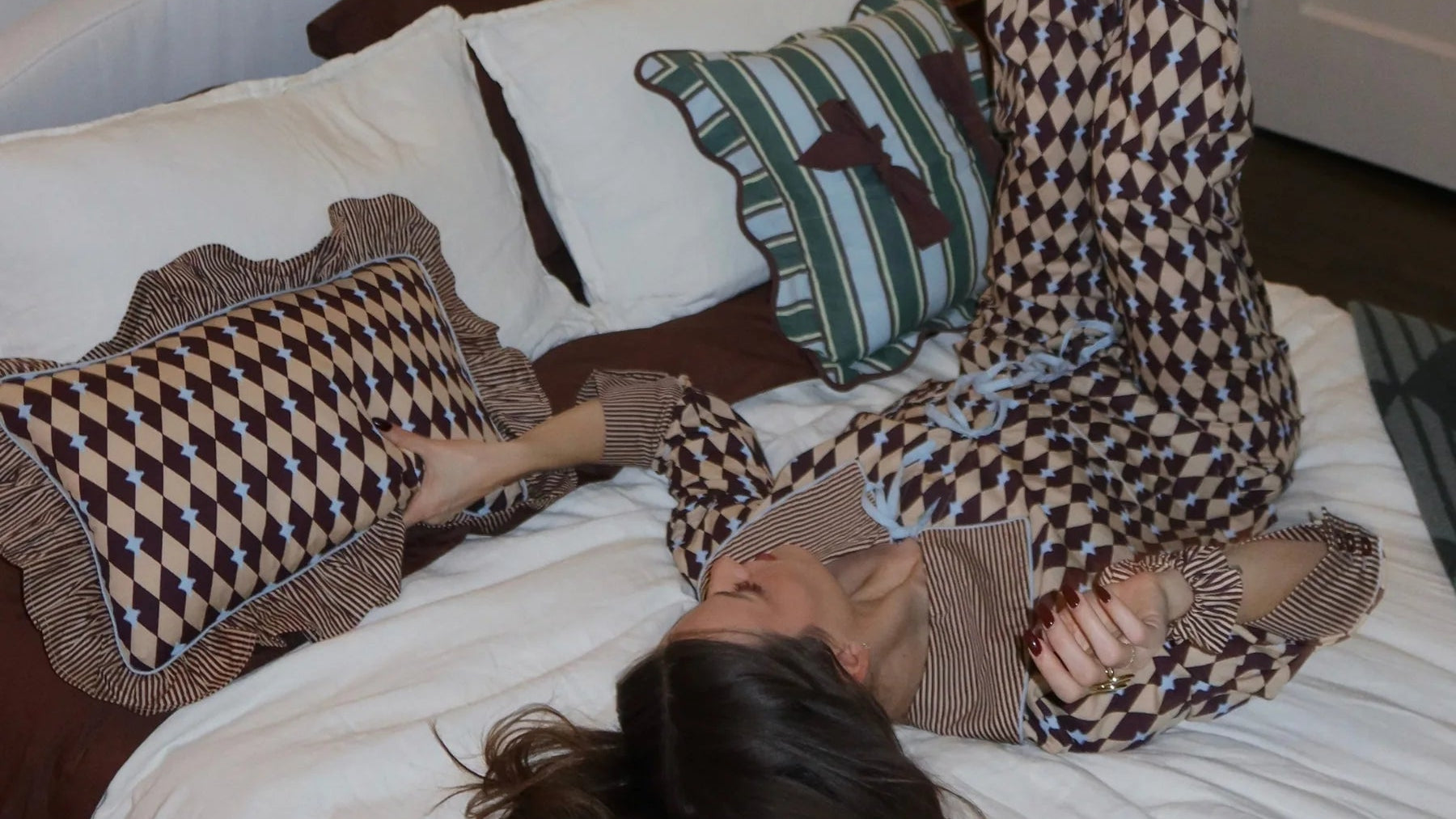Woven from 100% cotton and finished with a delicate ruffled edge, this TBCo cushion in a playful camel and burgundy harlequin pattern is the perfect finishing touch. The reversible design with diamond pattern on the front and contrasting stripes on the back offers endless styling possibilities. Mix or match across sofas, beds and corners for easy updates with impact.