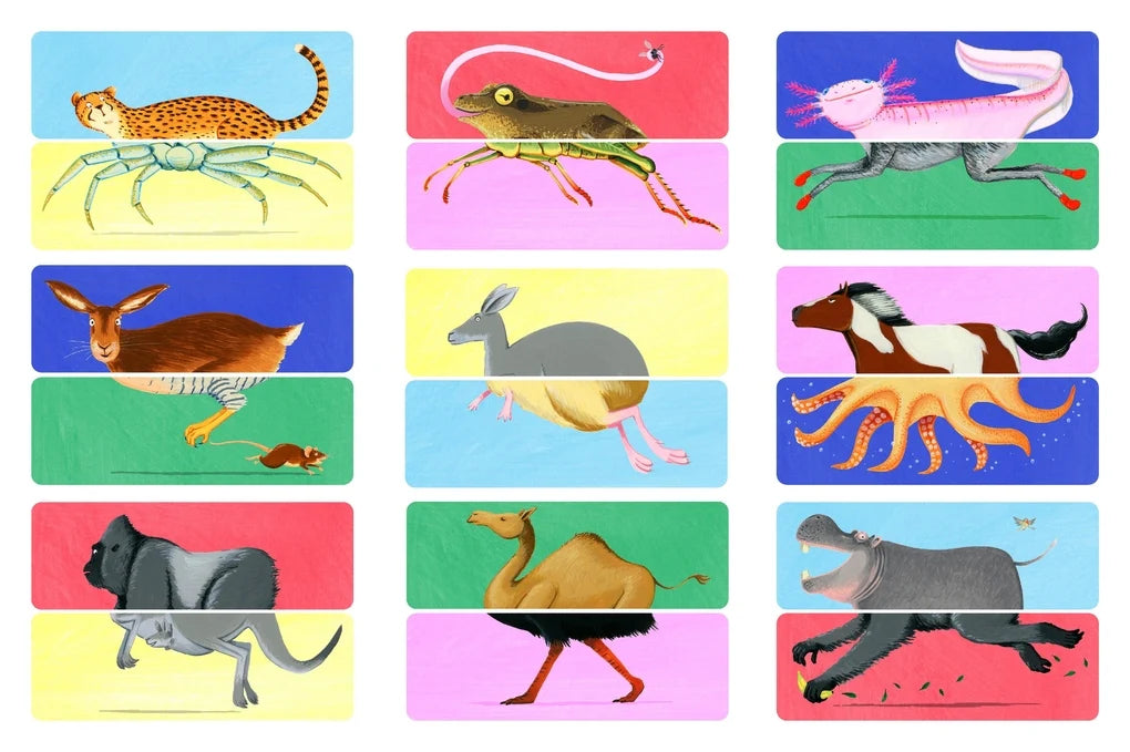 Reunite animals with their bottom halves or create absurd creatures in this mix and match memory game. Combine a crab with a cheetah, a grasshopper with a greyhound or a slow loris with a snail, there are endless combinations and several ways to play for hours of fun! Discover fun facts about the animals in the accompanying booklet.