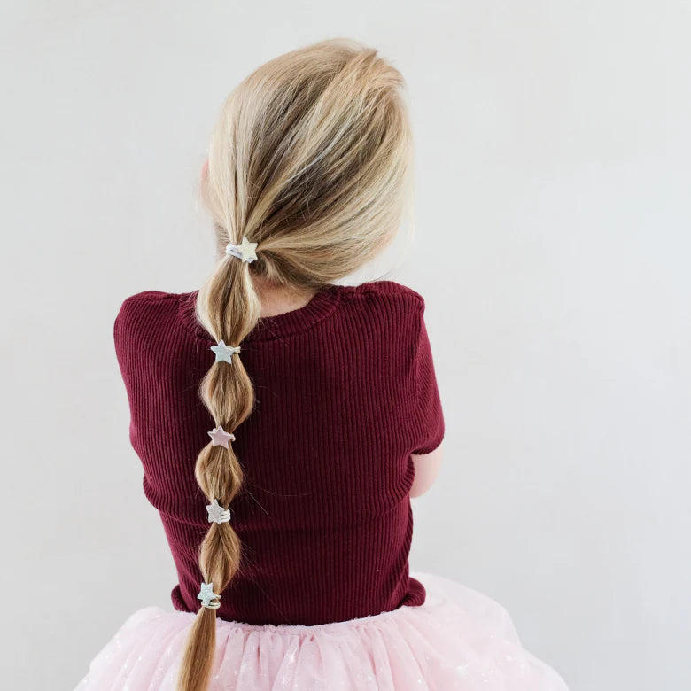 Add a little magic to their hair with our Sparkle star ponies! Featuring layered stars in shimmering glitters and metallics, these ponies are perfect for brightening up the festive season and any day after!