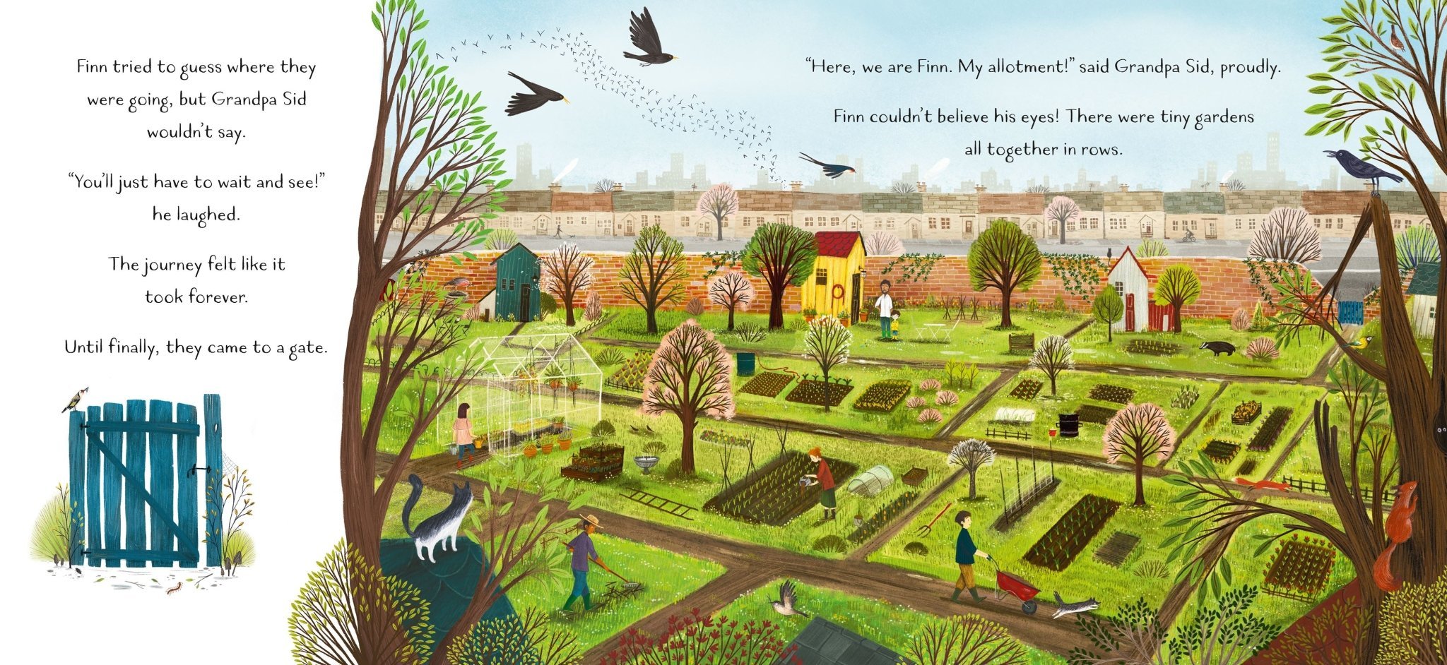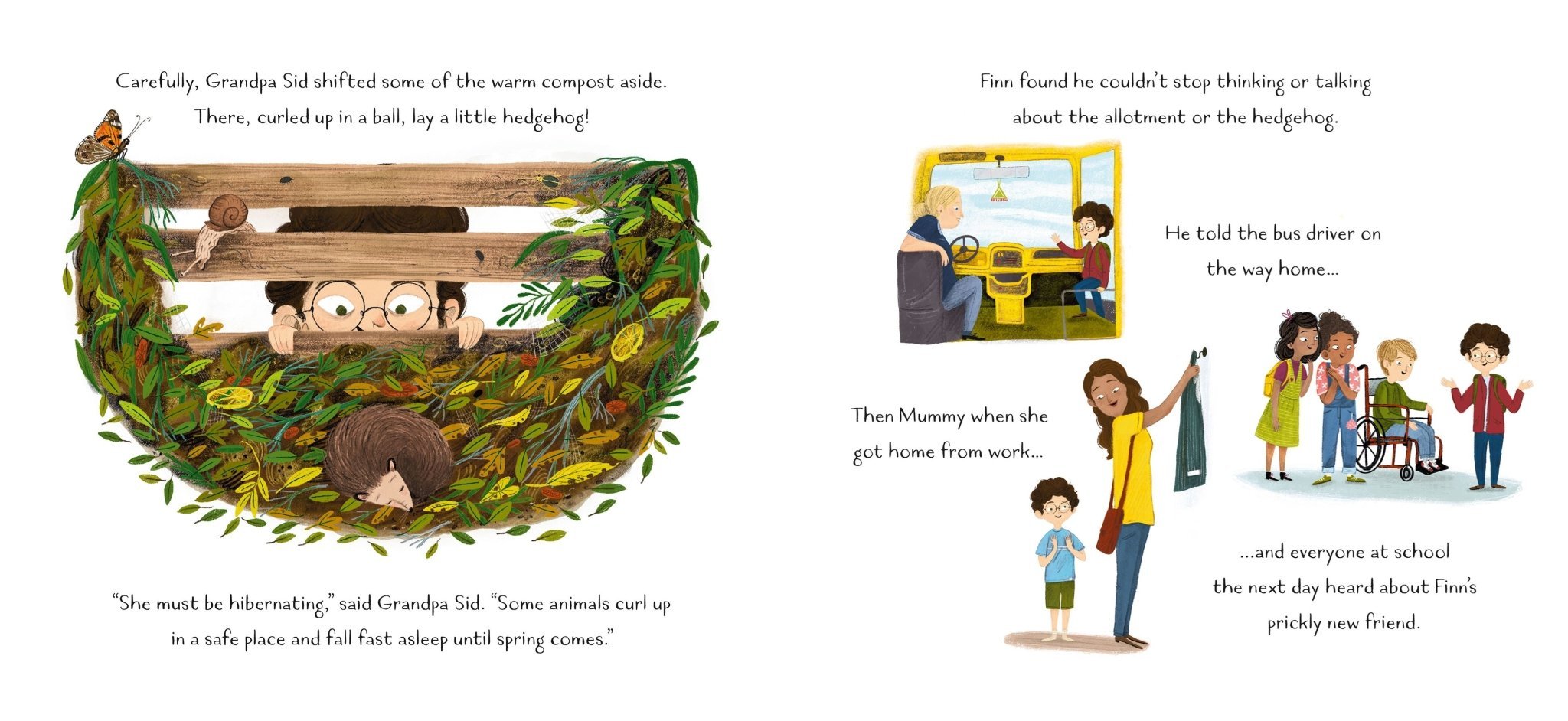 The first in the Finn's world series introducing urban rewilding for young readers. Nature loving Finn’s life has been turned upside down by a move to the city. All he can see is dull, grey buildings, But Grandpa has a surprise in store - his allotment! Finn quickly realises that nature can be found in the city, and is amazed by the discovery of a hibernating hedgehog. With Grandpa’s gentle guidance, Finn learns how to care for the hedgehog family as well as a hungry fox. With birds and plants galore, this beautifully illustrated, inspiring picture paperback has endpapers giving a directory of wildlife featuring all the common species that can be found in towns and cities. Also in the series Mia Makes A Meadow and Daisy And Jack's Perfect Pond.