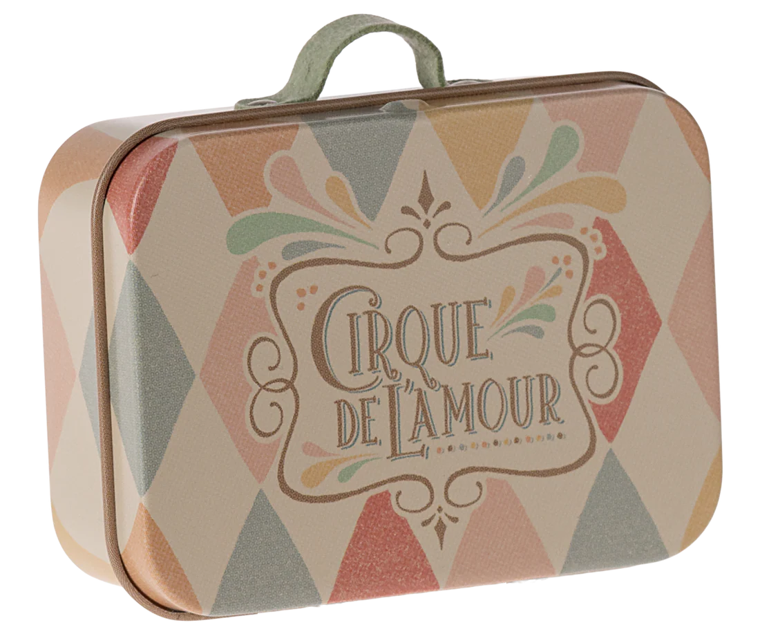 This small metal suitcase with colorful illustrations and beautiful details can be used for any occasion: small gifts, storage of small items or for mice and small bunnies to bring their belongings on the go.