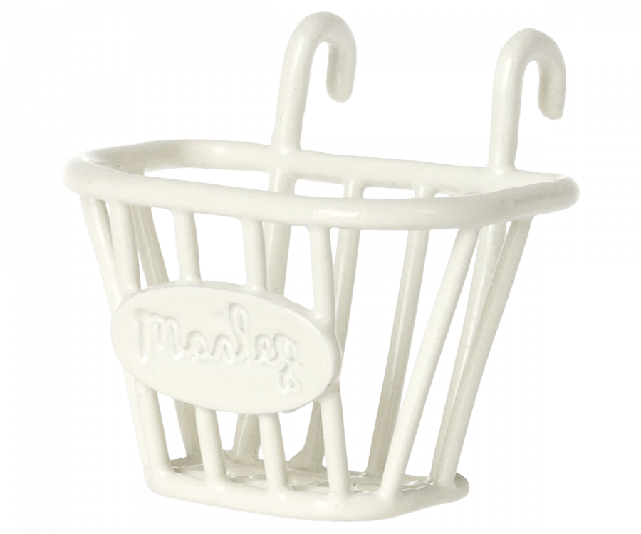 This metal basket fits Maileg tricycles. Place it on the handlebar and your mouse will always have storage space on the go, for any belongings.
