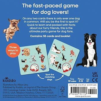 - A spotting game for dog lovers: on any two cards there is one – and only one – dog in common. Will you be the first to spot it?