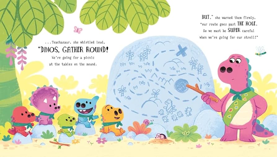 Little Chattysaurus LOVES to chitter chatter. He wants to tell EVERYONE how to build a den, how to play hide-and-seek AND his thoughts on having picnics. There is a LOT to say. But when going on adventures into the woods, there is often a lot to listen to as well – and some of it is VERY helpful!