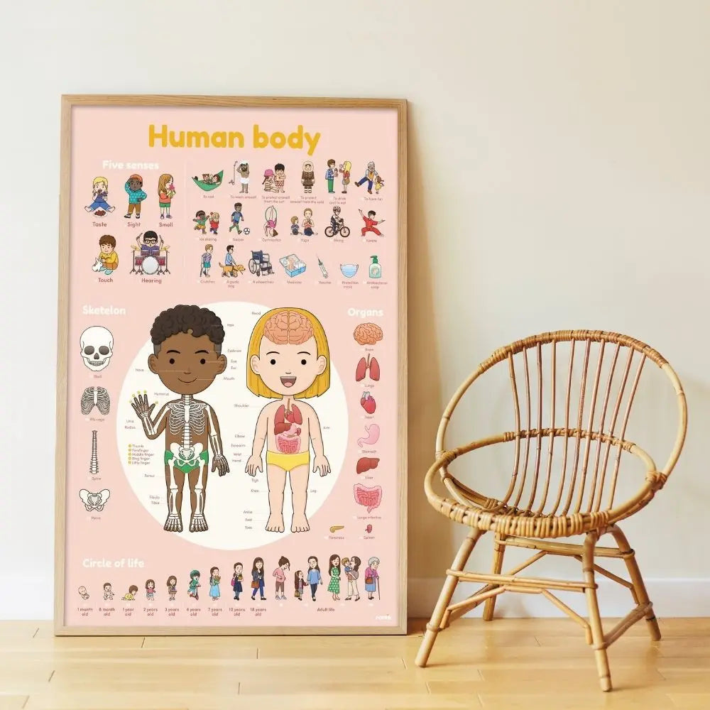Once completed, the human body educational poster can be proudly displayed as colourful and informative wall art in a bedroom, playroom, or classroom.