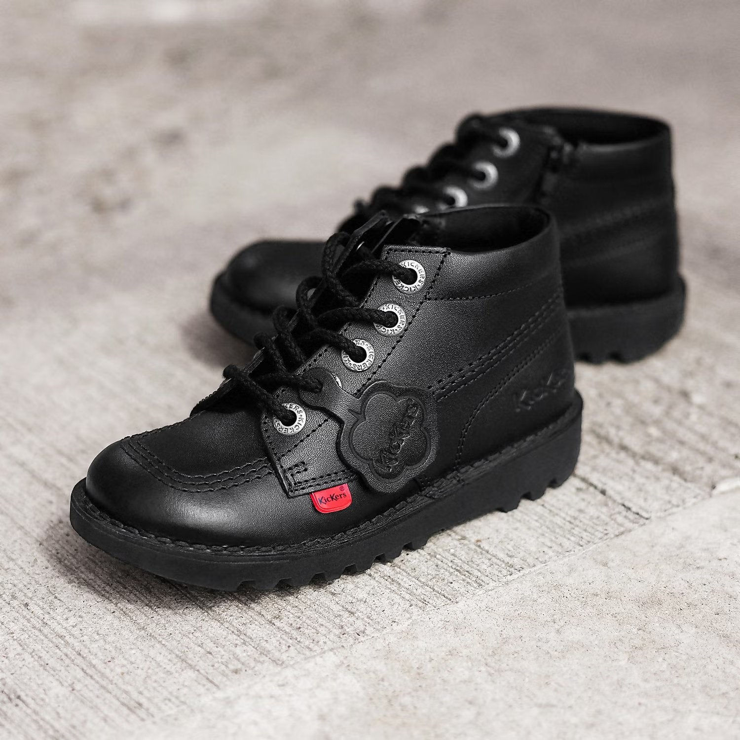 We made them with all our most-loved and signature features, including our Kickers' tabs and fleurette. Plus, the padded collar and trademark chunky sole promise to be kind on little feet.