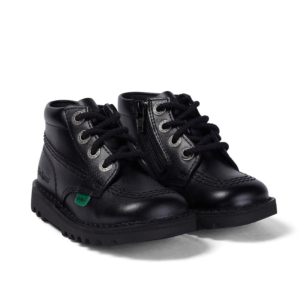 Product Details for Kickers: Kick Hi Zip Unisex School Shoes - Black Leather