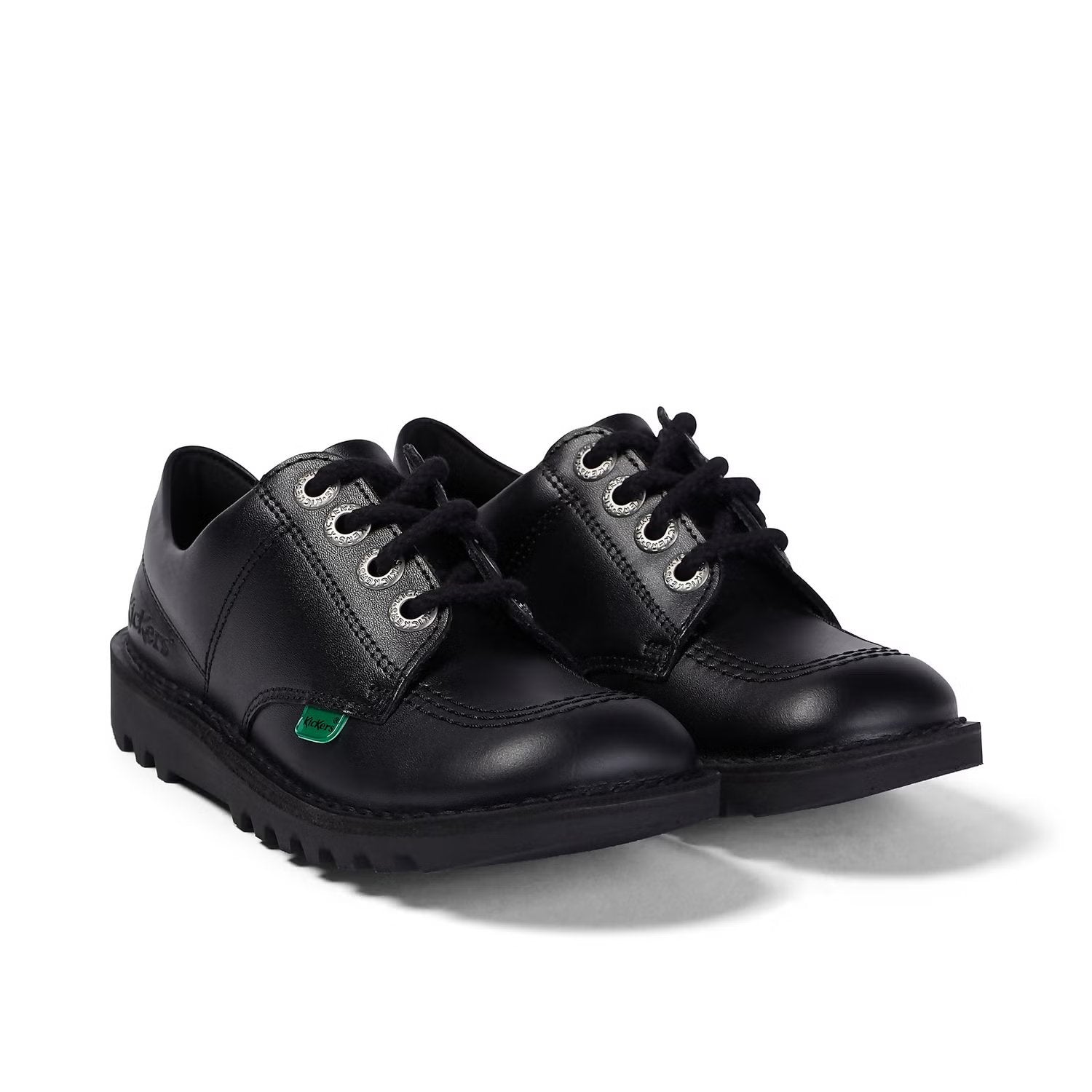 A school favourite, the Kick Lo proves that Kickers DNA never goes out of style. In matte leather, this shoe features our signature triple stitch, a padded collar for enhanced comfort and Kickers branding on the eyelets.