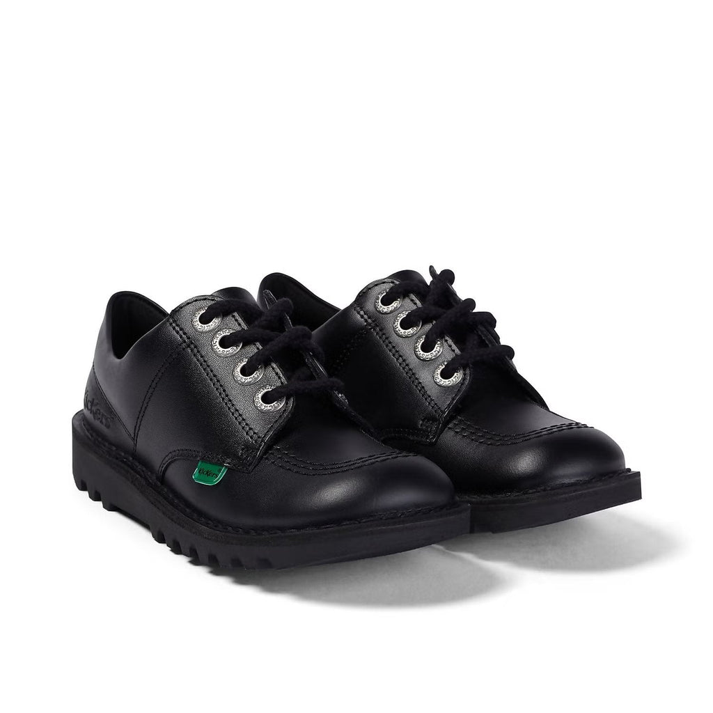 Kickers: Kick Lo Unisex School Shoes - Black Leather
