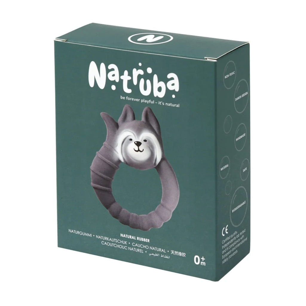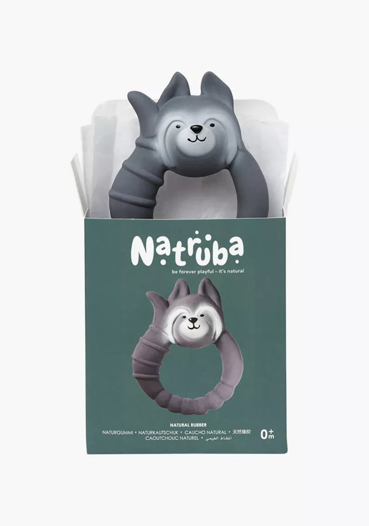 Natural rubber toys should be cleaned using mildly soaped water and a damp cloth, do not use a dishwasher or sterilise in a microwave oven. Air Dry.